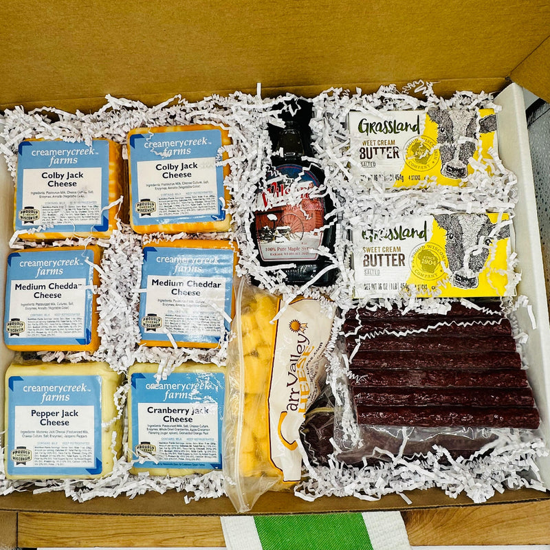 Try our Wisconsin raised dry aged beef, well marbled Duroc pork, or creamy Wisconsin dairy today.