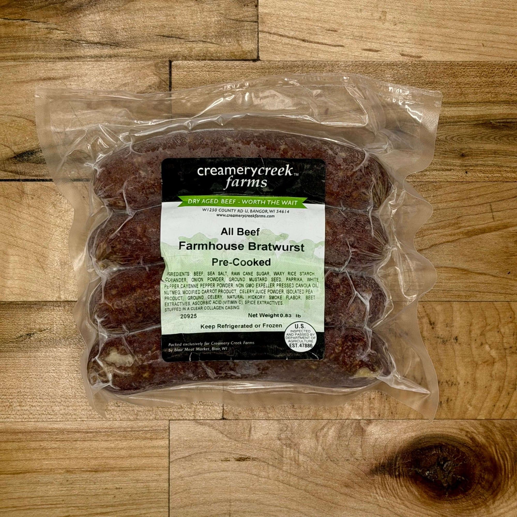 Our All Beef Smoked Farmhouse Brats are fully cooked, heat-and-eat, and made from 100% beef. Tender casing, juicy, perfection with that famous farmhouse home made flavor. Think of them as the Wisconsin pork brat’s bolder, more flavorful cousin. With six hefty links in each package, you’re in for a mouthwatering meal that’s easy to enjoy any night of the week.