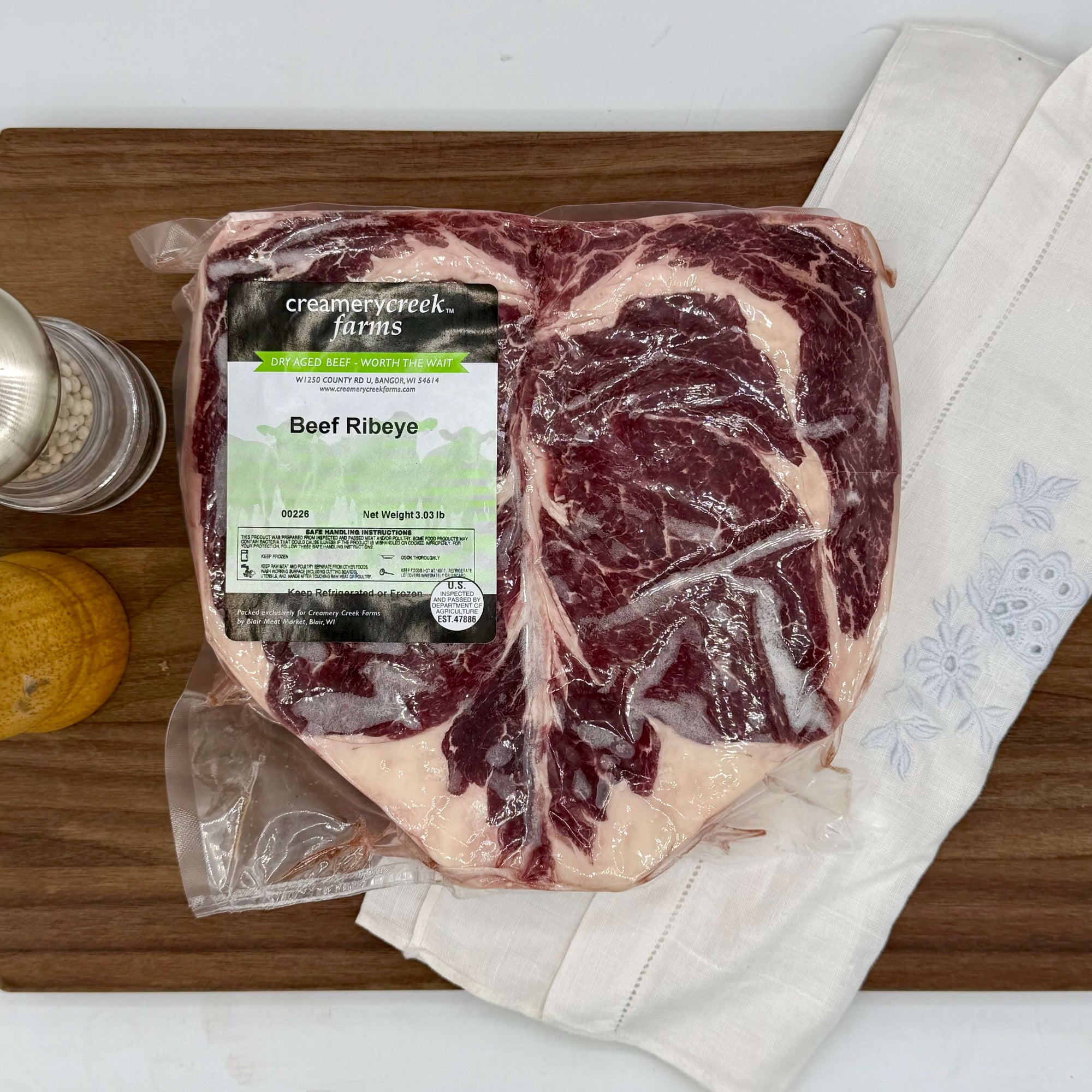 Experience the quality of our dry-aged boneless ribeye steaks. Limited quantities, don't delay!